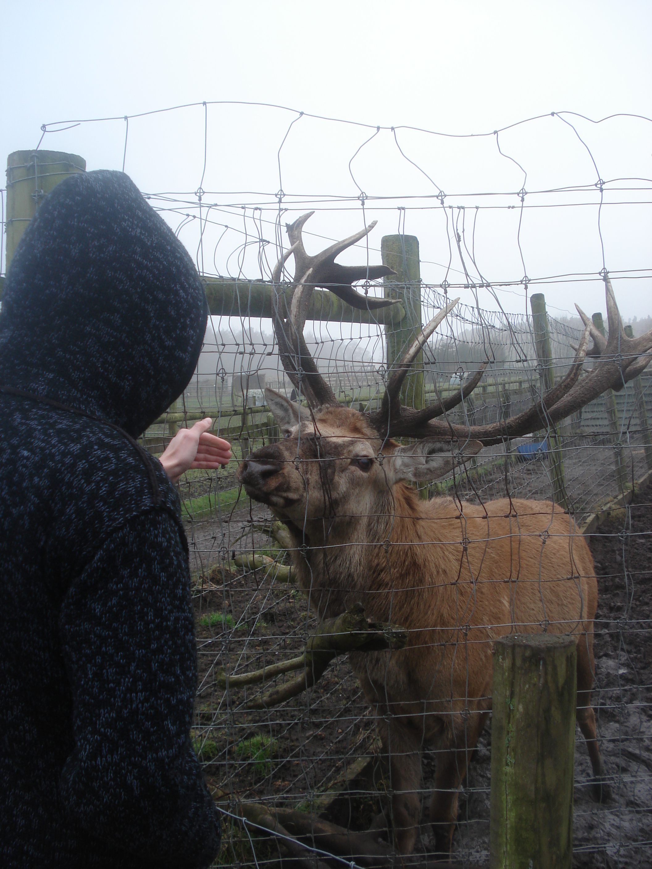 Mr Peacock didn’t seem to mind Jam at all but he was not quite the most surprising resident. That title would have to be reserved for the full size red deer stag who also seemed quite friendly despite the scary wire.