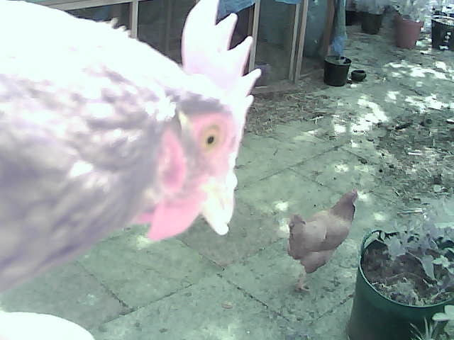 A born leader Bea was often to be found on top of the glug giving out her orders, or body bouncing against the run (just to check it was in fact escape proof, we were pretty sure this was a bluff and she was actually digging a tunnel). Without doubt also one of the cleverest chickens we have ever had she knew her own name and would come when called and even managed to defeat Jamses automatic door opener by waiting till it closed and she heard me filling the bowl with what was meant to be breakfast then pushing the door open just enough to get herself out and ensure first dibs. We would joke that Bea had plans to take over the world and when Jam installed chicken cam it seemed like we weren’t too far wrong (this was hung onto one of our wall mounted hanging baskets, but Bea managed to fly up to it non the less!)..