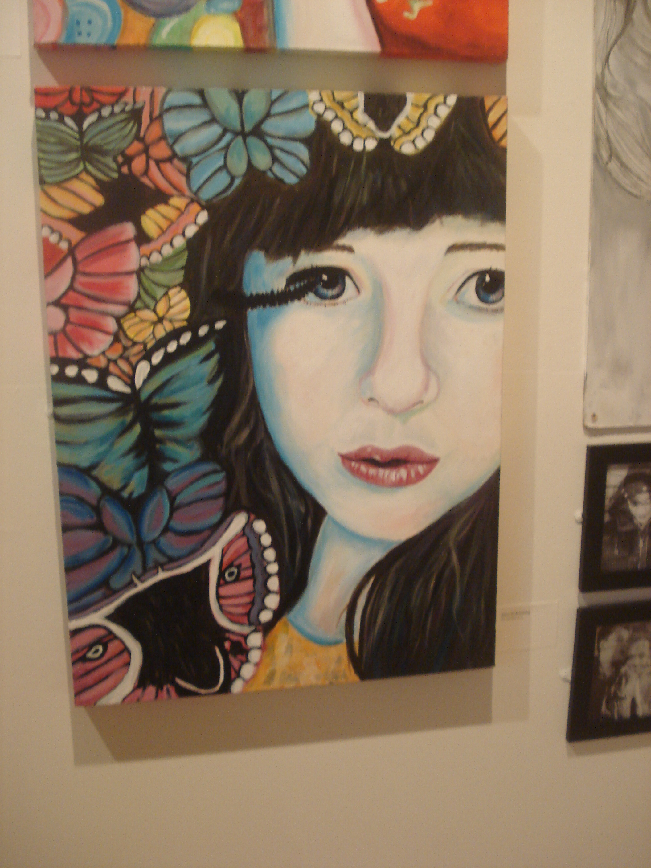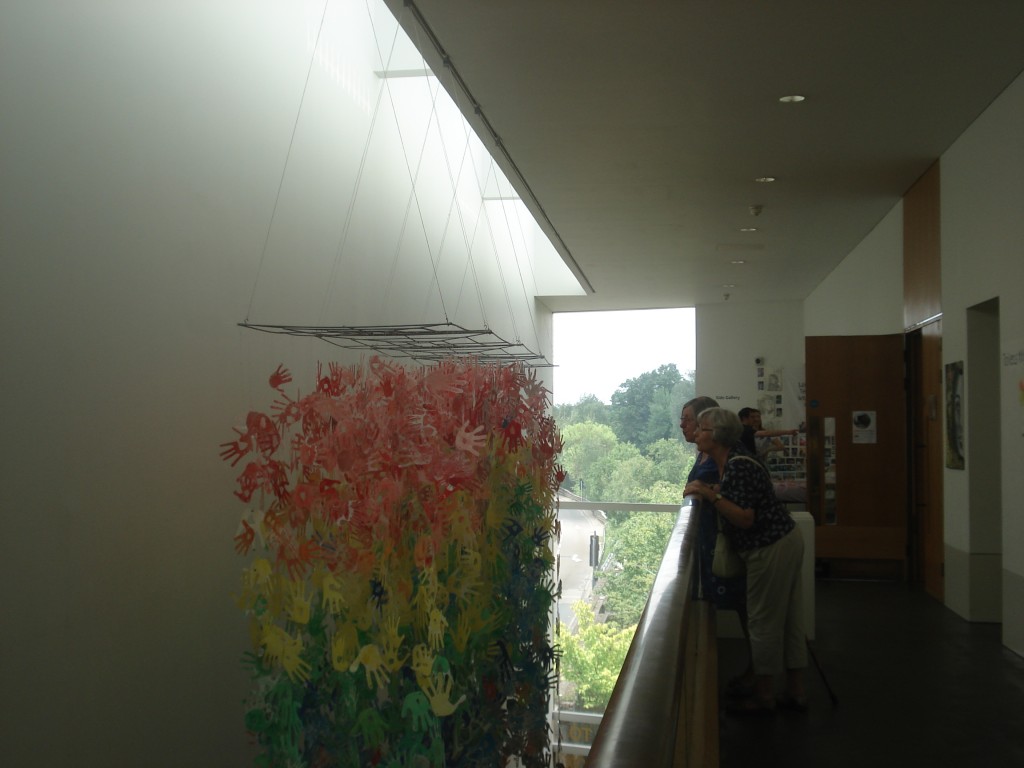 But we headed up the stairs (under the dangly hands) to the first floor gallery