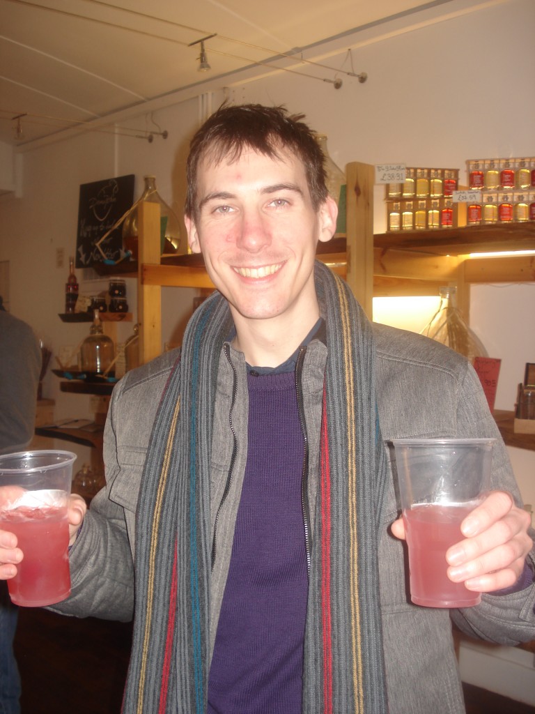 We weren’t actually around for Valentine’s day itself (more on that in the next post) so I searched around for something romantic we could do on a weeknight instead. Just up the road from work is excellent buy your bottle and fill it with lovely fruit flavoured booze or oil shop the DemiJohn. As I’m signed up to their most excellent newsletter I spotted that they were holding a tasting evening on Thursday 12th, tickets were acquired! We arrived to sample a lovely raspberry cocktail called the Raspberry Fresh recipe here (modelled in the above photo by the Jamses) then it was onto the tasting which had been laid out for us on one of the newly acquired barrels.