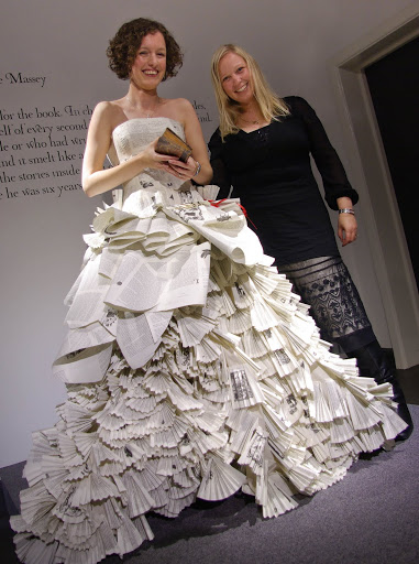 Below is the dress before it was put together, they laid out all the book covers and then stitched them together using sparkly nylon thread. Also the bodice was made out of the bindings of the books. There are loads more photos and information on this one on the designers site here. Definitely worth a look. Kind of following on in the fairytale stakes we have this dress here which I have nicknamed the big book dress. I like the way that the pages appear to have fallen at the bottom of the dress but I think that this maybe doesn’t work as well as the previous dress (it was designed by a bridal designer whose blog post about the dress c