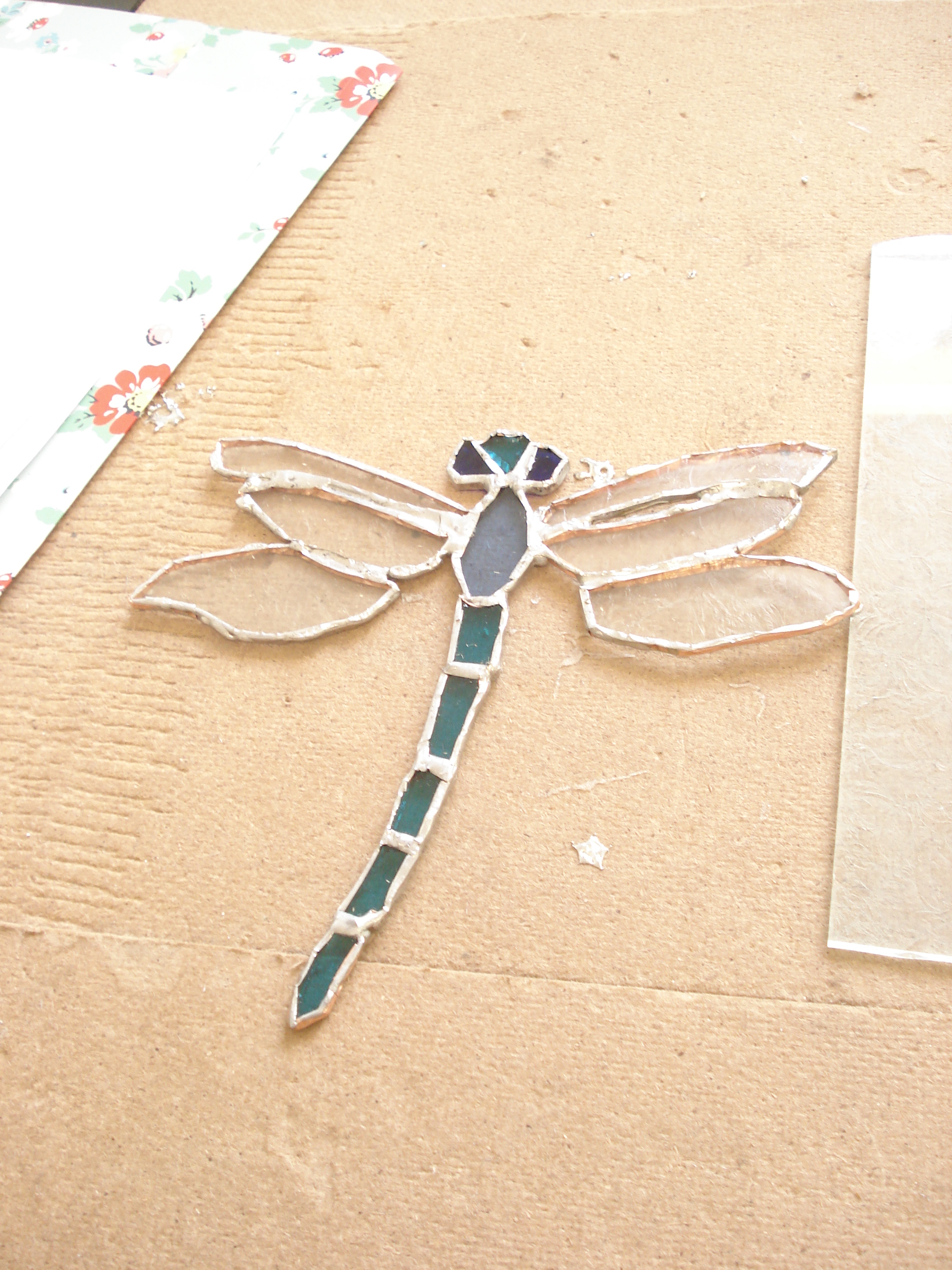 Getting everything to fit was probably the worst bit but after quite a bit of re-cutting and wiggling to get the dragonflies into position, I soldered as I went with those) the pane was complete.
