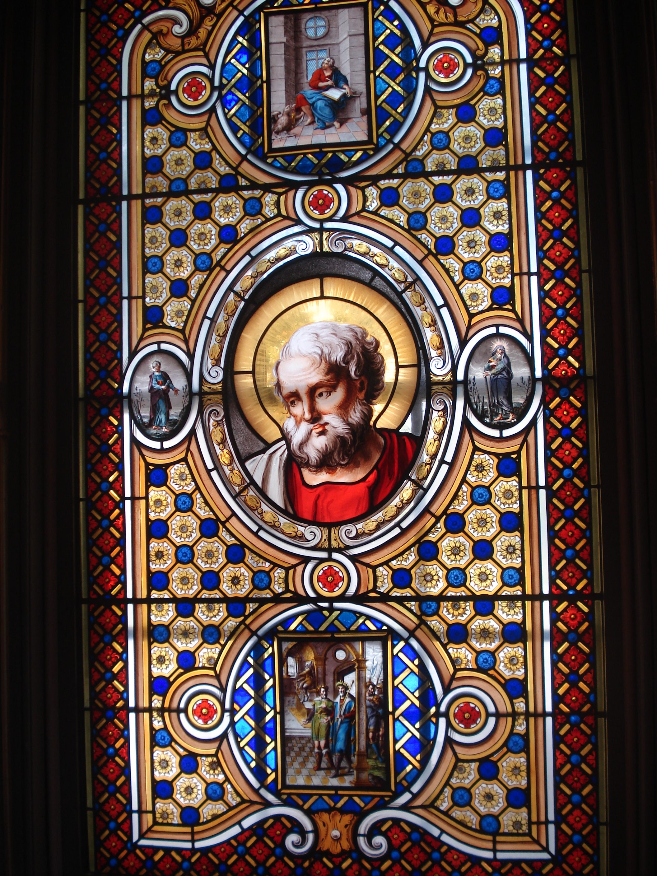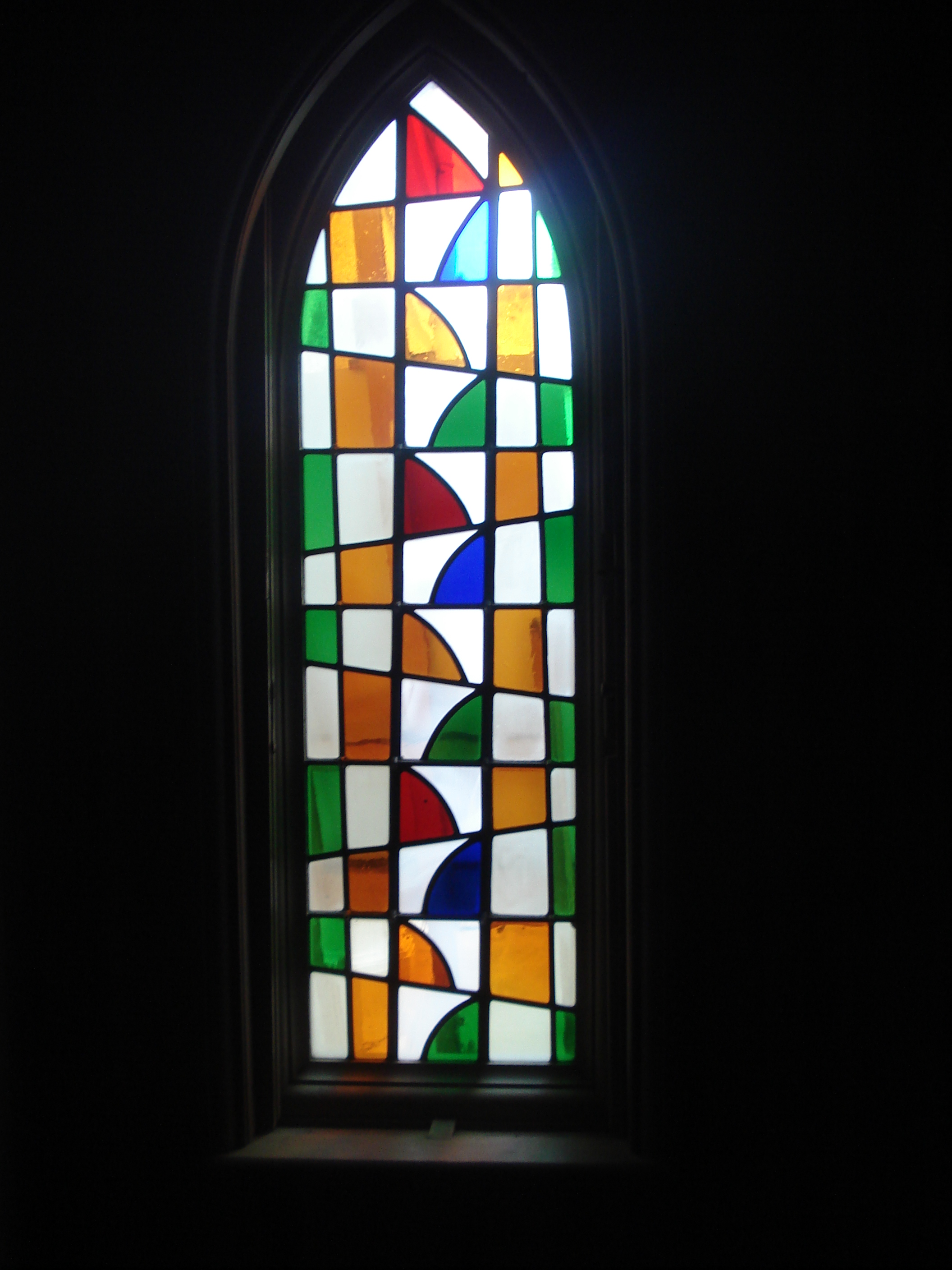 There was also 2 (the first of many) bright and beautiful glass windows flanking the door