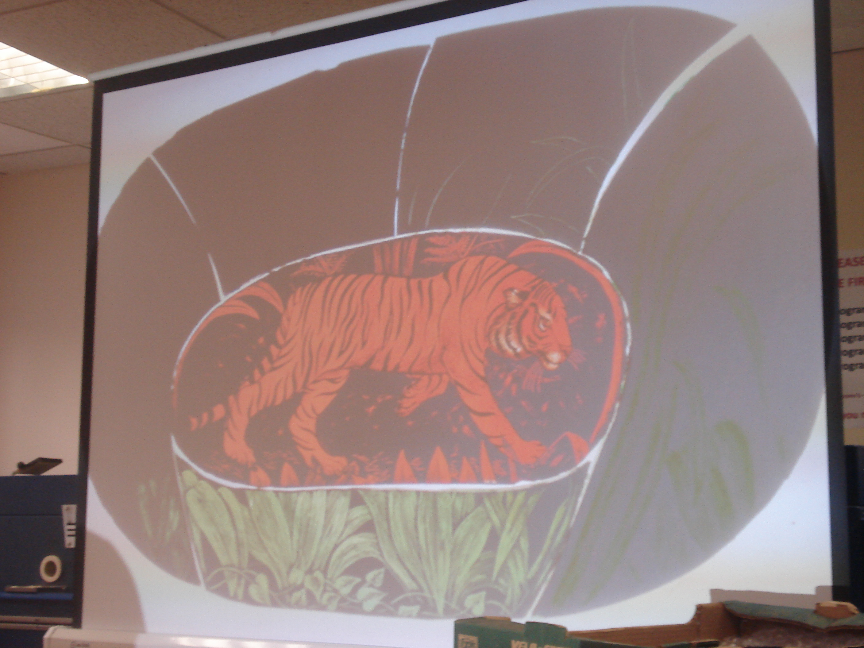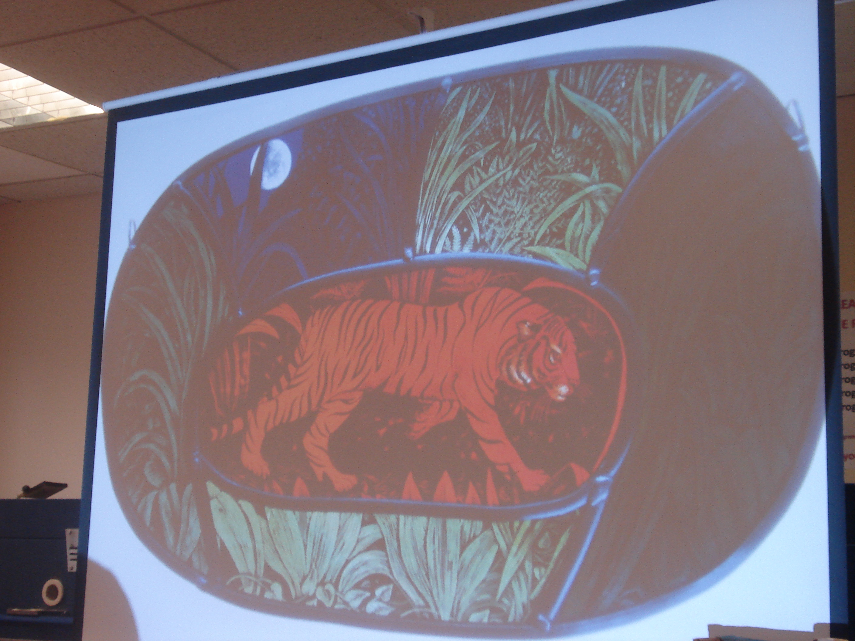 Stunning. All too soon the talk was over but my Bristol experience wasn’t quite complete, I hadn’t realized that Tamsin would be selling some of her work at the end of the event. I honestly only went for a look but then spotted a cat panel that was very similar indeed to our own little lion and so of course that came home with me as a lasting reminder of a great day out.