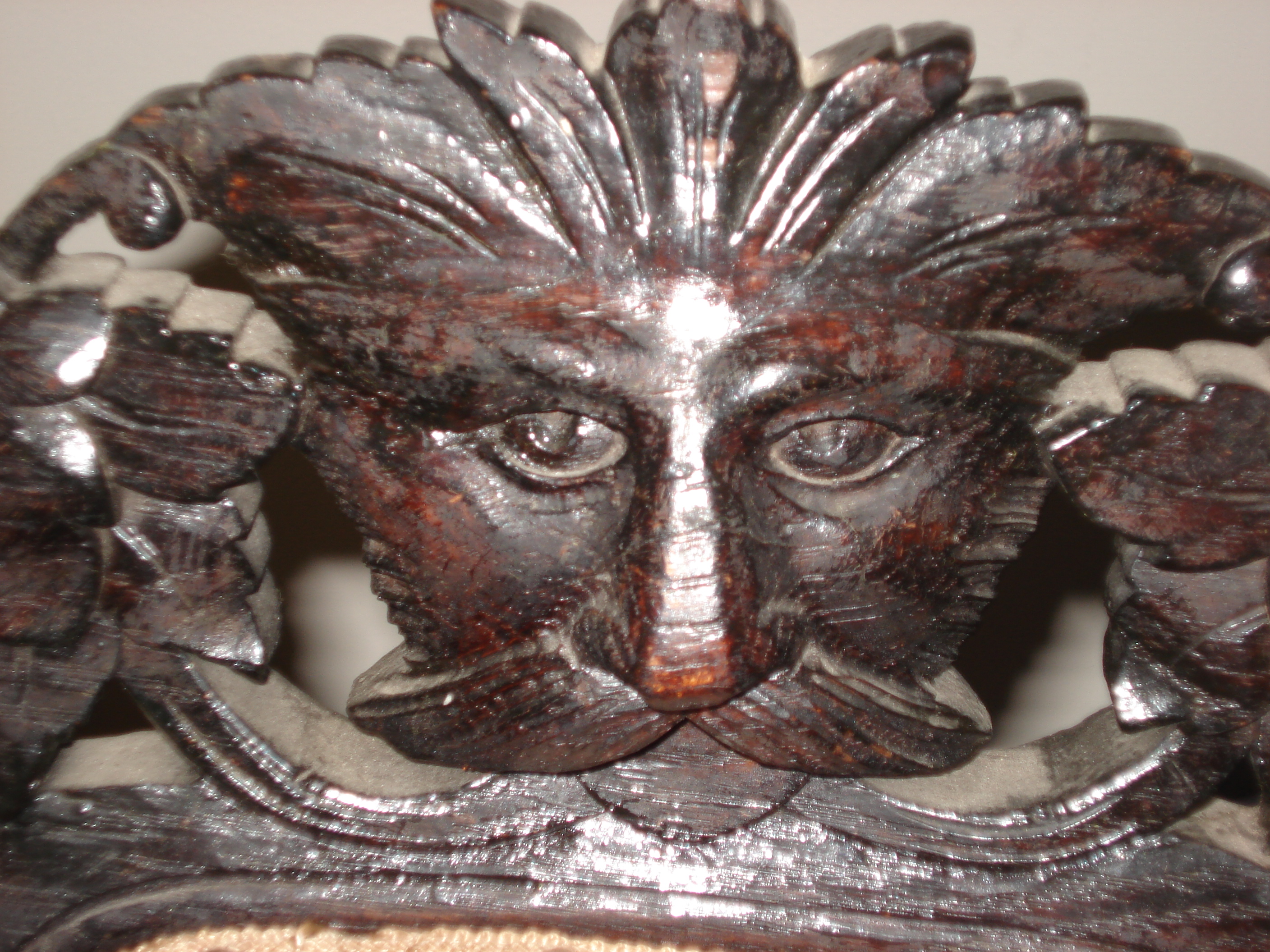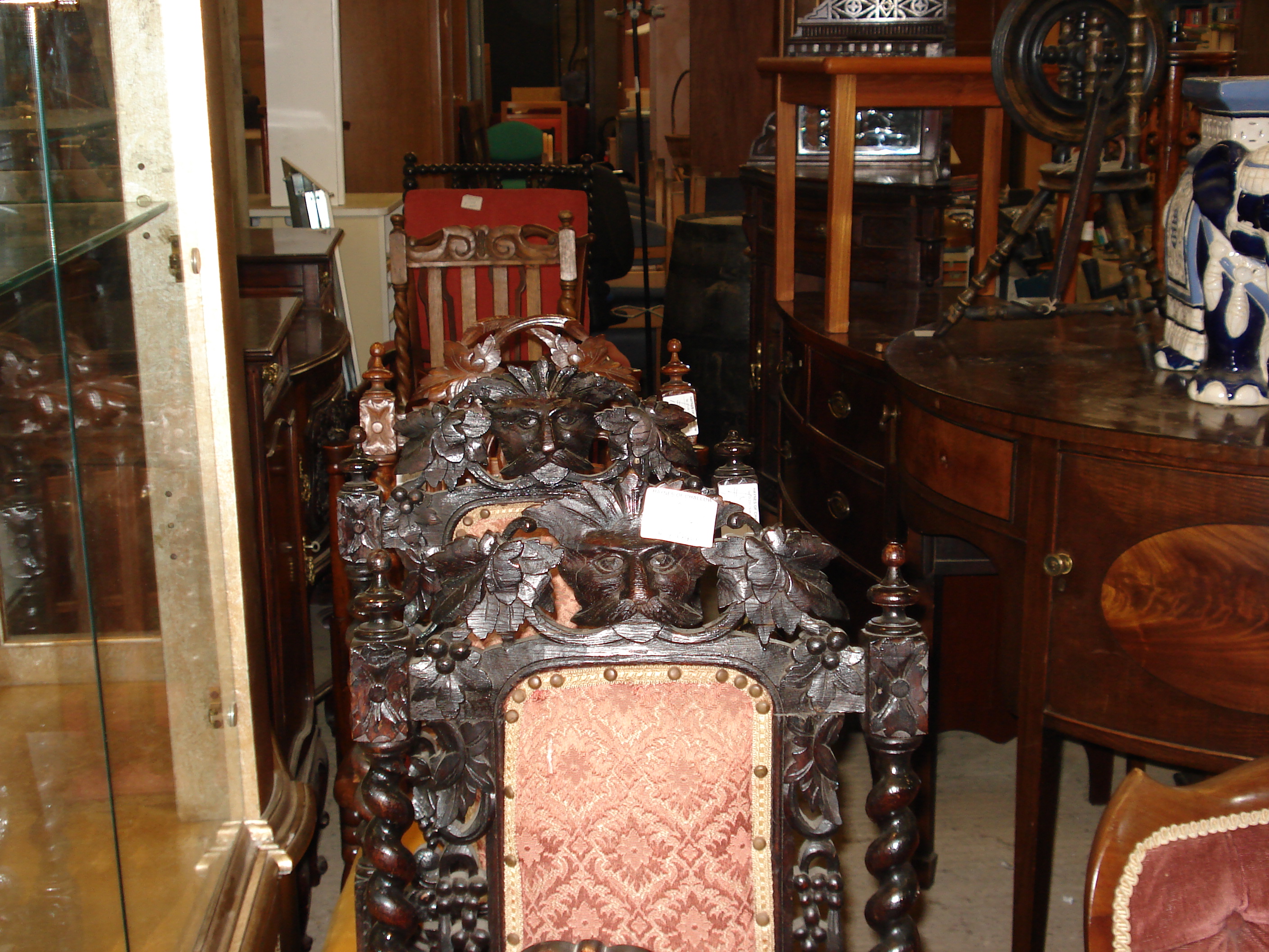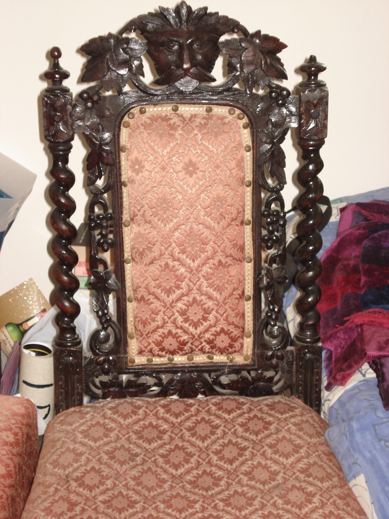 but I admit my attentions were half hearted, I just couldn’t stop thinking about them, so after an attempt at haggling (which unlike on bargain hunt didn’t work) I paid the asking price and we squeezed them into the car. One in particular needs work on one of the legs as there is rather a large chunk missing (this is also the most rickerty of the two) the other has one of the balls at the top of it missing. I’ve had a look around and there is a restorer in Abingdon who comes highly recommended. I’m hoping to get them sorted out by him at some point, at the moment however I’m just enjoying looking at them!